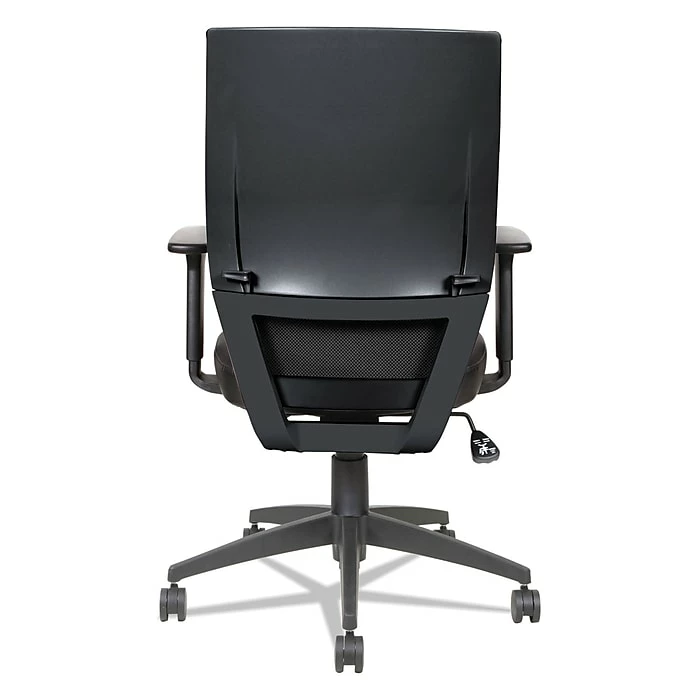 - Breathable mesh back and generously padded leather seat for all day comfort