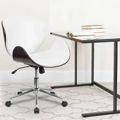 Flash Furniture Mid-Back Walnut Wood Swivel Conference Chair In White Leather (SDSDM22405WH)