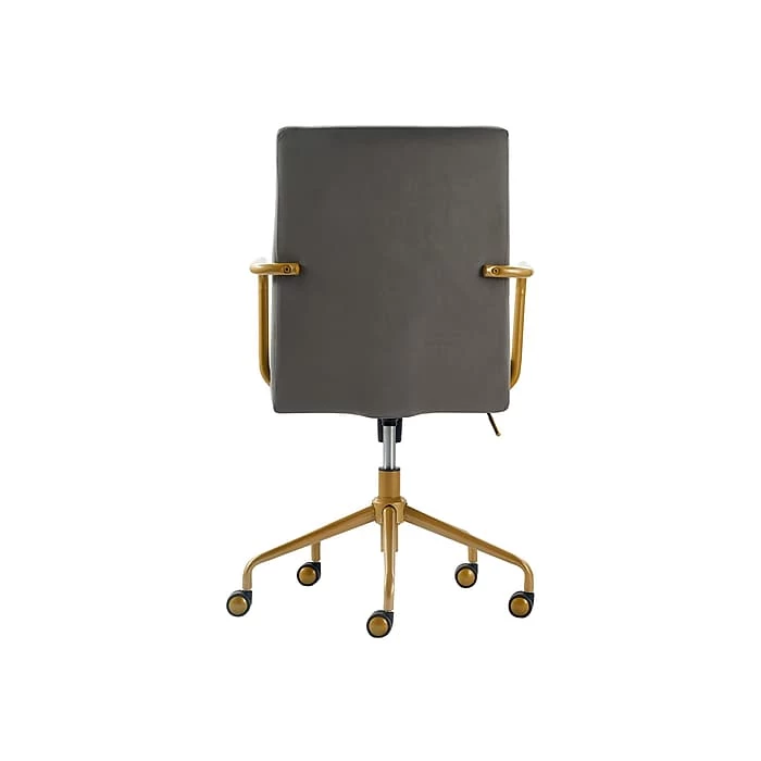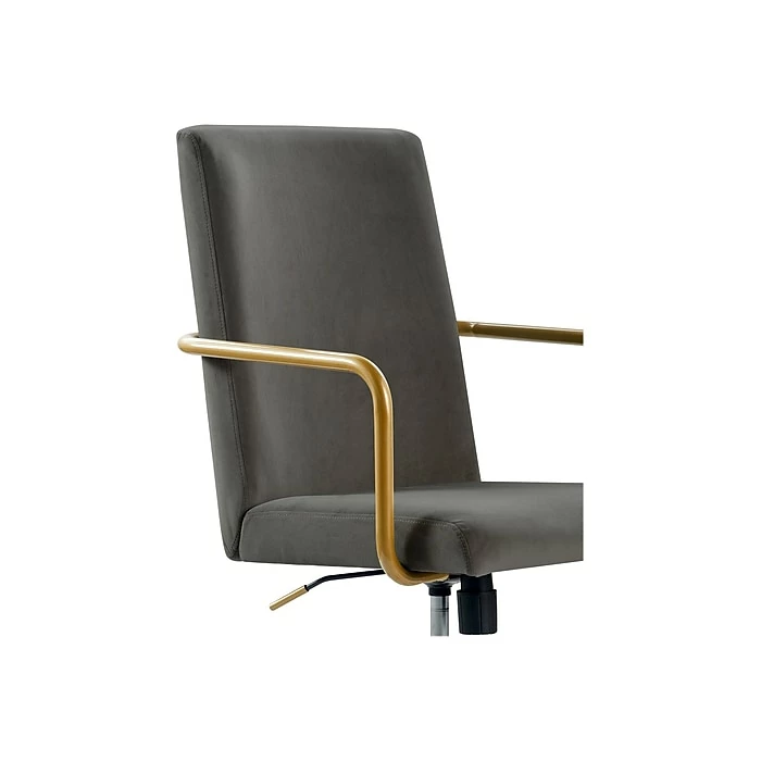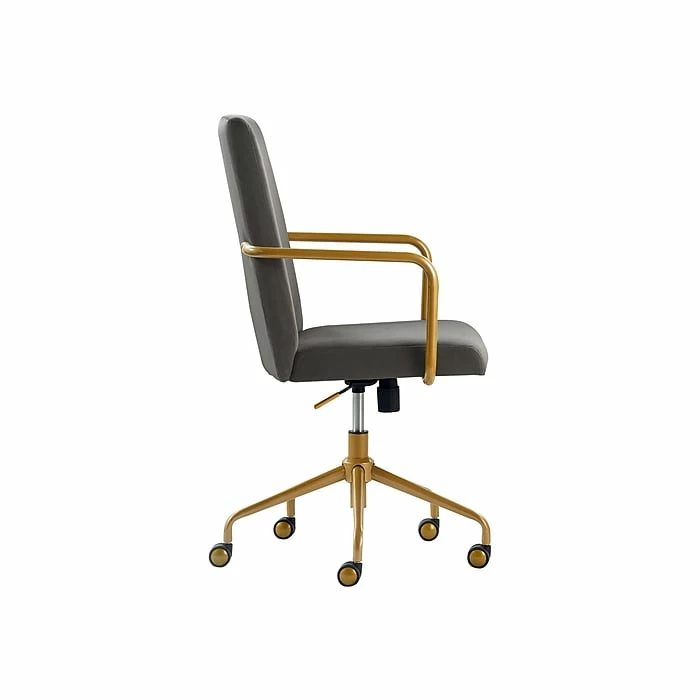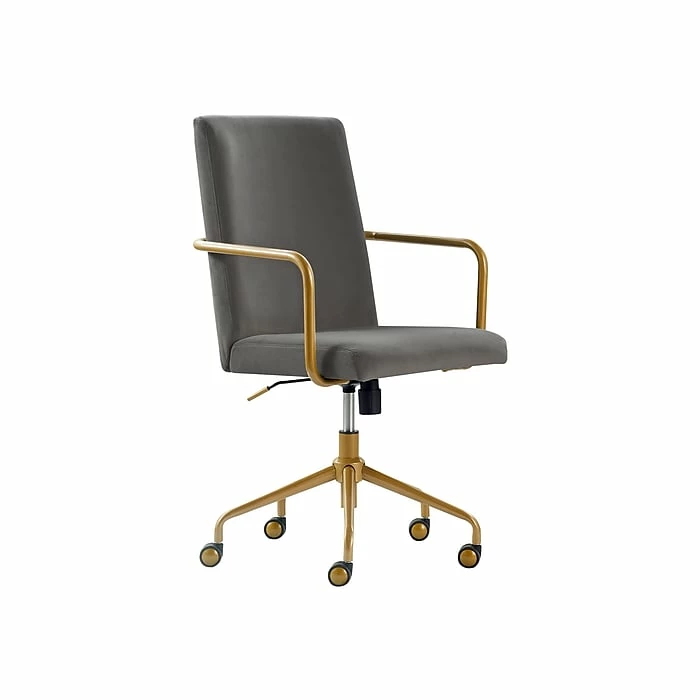 Turn your office space into a creative space with the Elle Decor Giselle desk chair. Chic and modern, this computer chair is decked head to toe with cool features. Its mid-century modern design features lustrous, gold metal trim on the arms, base, and wheels. Its butter-soft velvet fabric and high back will make you feel like an executive while the ergonomic seat cushion will keep you comfortable. Cute and versatile, this office chair adds a touch of elegance to any home office, teen girl’s bedroom, or dorm.