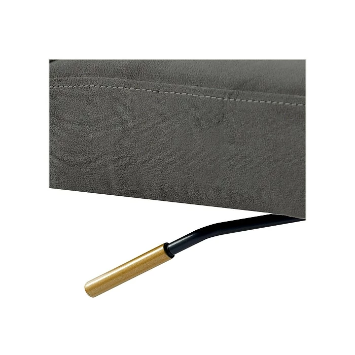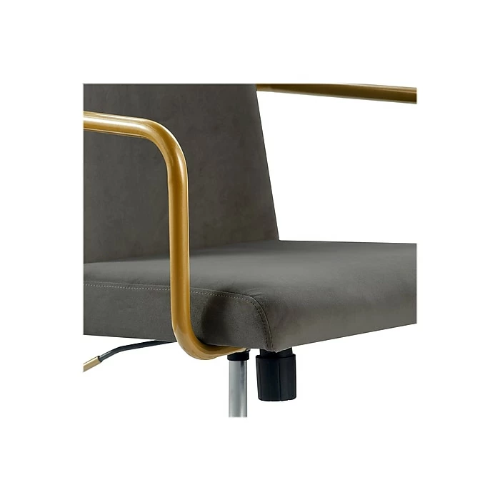 - Lustrous gold metal trim on the base, wheels, and arms adds modern glamour