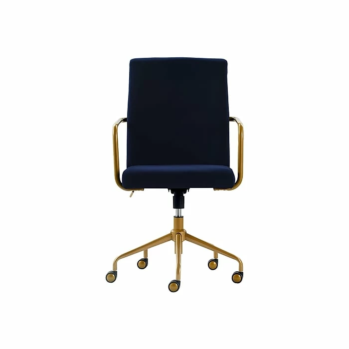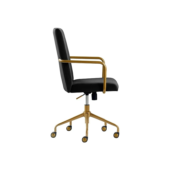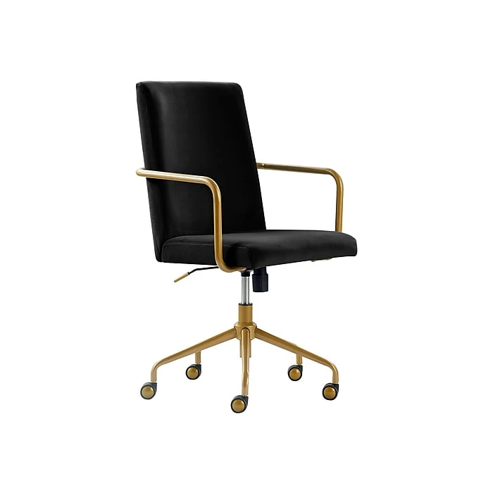 Turn your office space into a creative space with the Elle Decor Giselle desk chair. Chic and modern, this computer chair is decked head to toe with cool features. Its mid-century modern design features lustrous, gold metal trim on the arms, base, and wheels. Its butter-soft velvet fabric and high back will make you feel like an executive while the ergonomic seat cushion will keep you comfortable. Cute and versatile, this office chair adds a touch of elegance to any home office, teen girl’s bedroom, or dorm.
