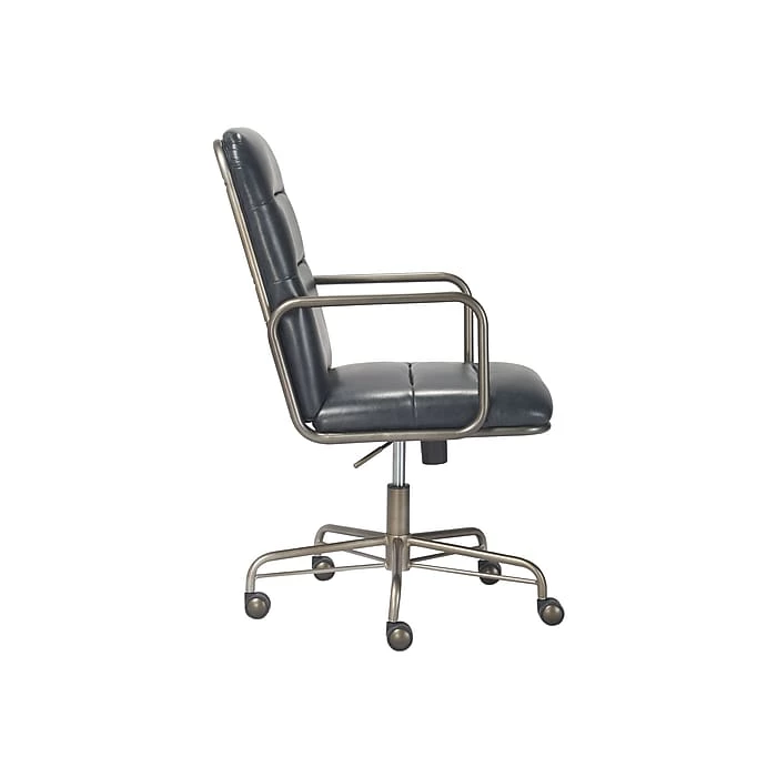 This comfortable office chair combines smart features with a mid-century modern design for a look that raises the style IQ in any work space. Created with sleek design in mind, the desk chair features rich executive-level bonded leather upholstery and a tube metal frame for a modern industrial look. It’s as comfortable as it is cool with ergonomic cushions and a padded high back for added support. With its adjustable height, recline, smooth rolling casters, and 360-degree spin, this Finch Franklin computer chair gives you the versatility you need to multitask.