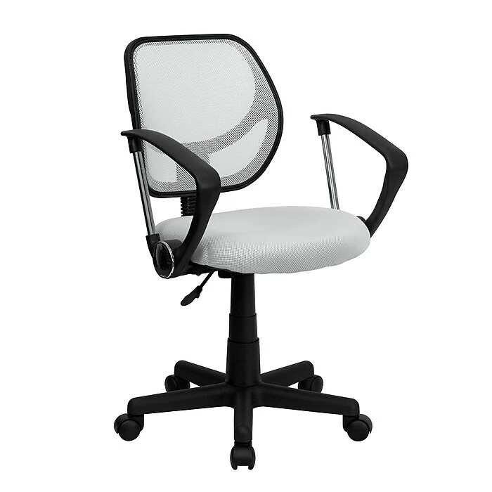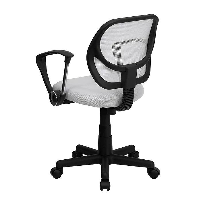 The Flash Furniture Contemporary Task Chair in an elegant white shade is perfect for any setup and looks neat and professional. For extra softness and cushioning, this mid-back task chair has high-quality mesh upholstery. Its pneumatic seat height adjustment mechanism feature regulates the chair height and provides a balanced support to lower back. The chair is designed with breathable mesh back and 2-inch thick padded mesh seat for maximum comfort. For safety purpose, this chair uses CA117 fire retardant foam cushions.