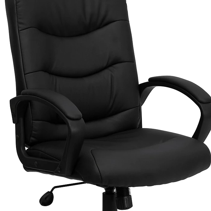 Create an oasis of comfort in your office with this Flash Furniture executive office chair. The mid-back design and built-in lumbar support provide relief for tired muscles, while the padded fixed arms offer support for your upper body. Luxe LeatherSoft upholstery brings a rich, upscale look to this chair, making it perfect for a manager’s or CEO’s office. A 360-degree swivel seat and five-star base with rolling casters let you move effortlessly about the office without ever having to stand. Use the pneumatic seat height adjustment to find the perfect configuration for your desk or workstation. This Flash Furniture executive office chair features a tilt tension knob and tilt lock mechanism, making it easy to find the ideal angle of recline.