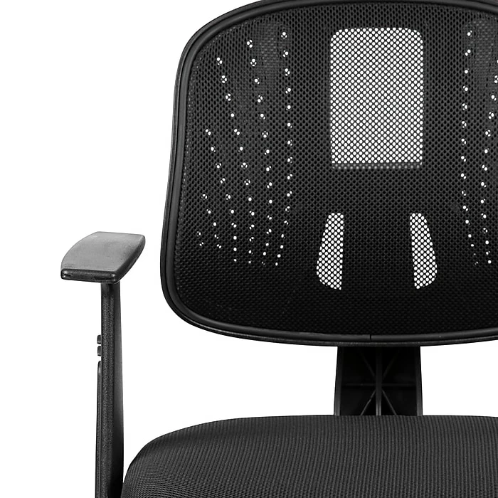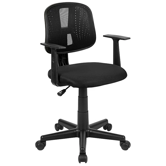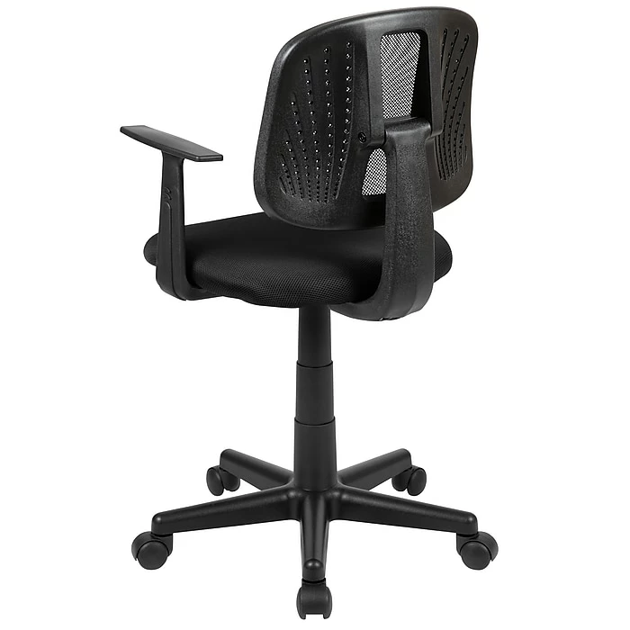 Tackle the workday with any challenge that comes your way on this snazzy desk chair. The cooling designer back features mesh material for exceptional airflow combined with gentle curved lumbar support. Proper support to the upper body provided by the fixed nylon arms. The Fundamental task chair will make an impressive footprint in your office with its cutting edge structure. The innovative back pivots backward while leaning back for a comfortable resting period. Adjust your office desk chair with the pneumatic adjustment lever that controls the height of your seat. Effectively switch between tasks with 360 degrees of swivel motion.