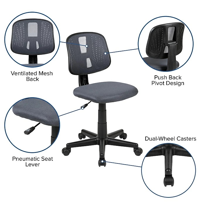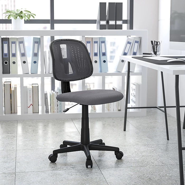 Tackle the workday with any challenge that comes your way on this snazzy desk chair. The cooling designer back features mesh material for exceptional airflow combined with gentle-curved lumbar support. The Fundamental task chair will make an impressive footprint in your office with its cutting-edge structure. The innovate back pivots backward while leaning back for a comfortable resting period. Adjust your office desk chair with the pneumatic adjustment lever that controls the height of your seat. Effectively switch between tasks with 360° of swivel motion. Providing exceptional value for modern office, the Fundamental seating will afford you the opportunity to purchase seating for students and small businesses.