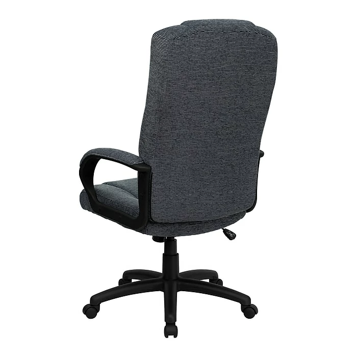 Modern LooksThe Flash Furniture fabric executive chair features a contrasting gray upholstery with a textured pattern that’s easy to maintain, and its deep tone is ideal for many different professional environments. Stitched detai ls on the back highlight support areas and create a contemporary look.ComfortThis Flash Furniture high-back executive chair is tall enough to support the entire back as well as the neck and head, and padding over the a rmrests offer a soft place to relax the forearms. This gray ergonomic executive chair swivels and tilts back to give users optimal mobility, and a powerful pneumatic mechanism raises or lowers the seat to the height that’s ideal for each worker.
