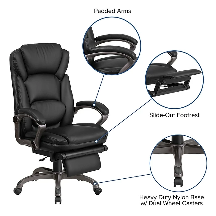 Get in a relaxed position with this Reclining Executive Office Chair by Flash Furniture! Chair reclines with a lever and has a slide-out footrest.