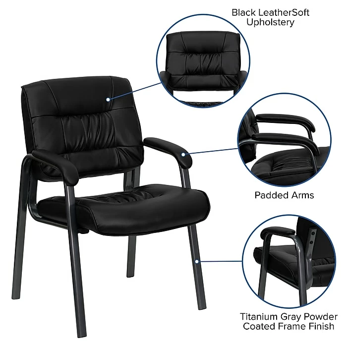 Bring a plush, inviting look to your waiting room with this Flash Furniture executive office chair. The titanium metal frame stands up to repeated use for long-lasting durability, and the plastic floor glides prevent damage to carpeted and hard flooring surfaces. Luxurious LeatherSoft upholstery adds upscale style to this chair, making it ideal for use in private waiting rooms or executive offices. Contoured cushions and padded armrests offer support and comfort for tired muscles, while the waterfall seat design helps promote better circulation. This Flash Furniture executive office chair is made using fire-retardant foam, providing added safety and peace of mind.
