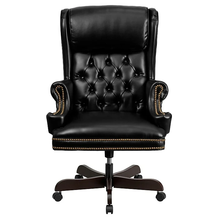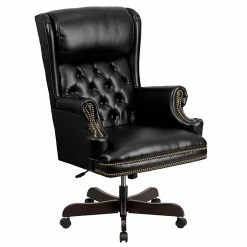 Versatile and elegant, the Flash Furniture Traditional Executive Chair in a black shade is an ideal addition to your office space. Upholstered with high-quality leather, this high-back executive chair adds a fresh look to your workspace. Its pneumatic seat height adjustment mechanism regulates the chair height and provides a balanced support to lower back. Equipped with a tilt function, this chair allows you to recline at a relaxed angle while reading or working. You can easily rotate the chair in all directions with its convenient swivel function.