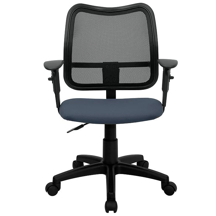 Long working hours are a breeze with the navy blue and black Flash Furniture Contemporary Task Chair that guarantees comfort and support. Upholstered with high-quality foam, this mid-back task chair adds a fresh look to your workspace. It is designed to support the mid-back and is a perfect choice when you work or read long hours. This chair offers optimum comfort with the lumbar support that fits your spine curve. Stylish and functional, this chair blends with both formal and informal setups.