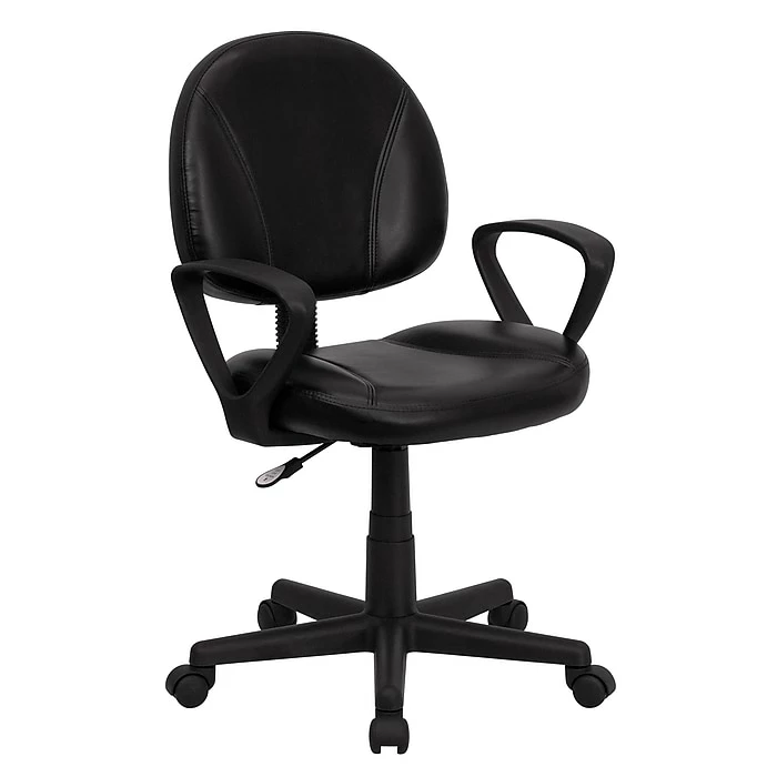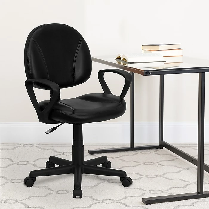 The Flash Furniture Contemporary Task Chair in an elegant black shade is perfect for any setup and looks neat and professional. For extra softness and cushioning, this mid-back task chair has high-quality LeatherSoft upholstery. Its pneumatic seat height adjustment mechanism lets you alter the height to attain a comfortable posture. This black computer chair comes with back tension adjustment knob that allows you to adjust the backrest tension as per your requirement for comfortable seating.