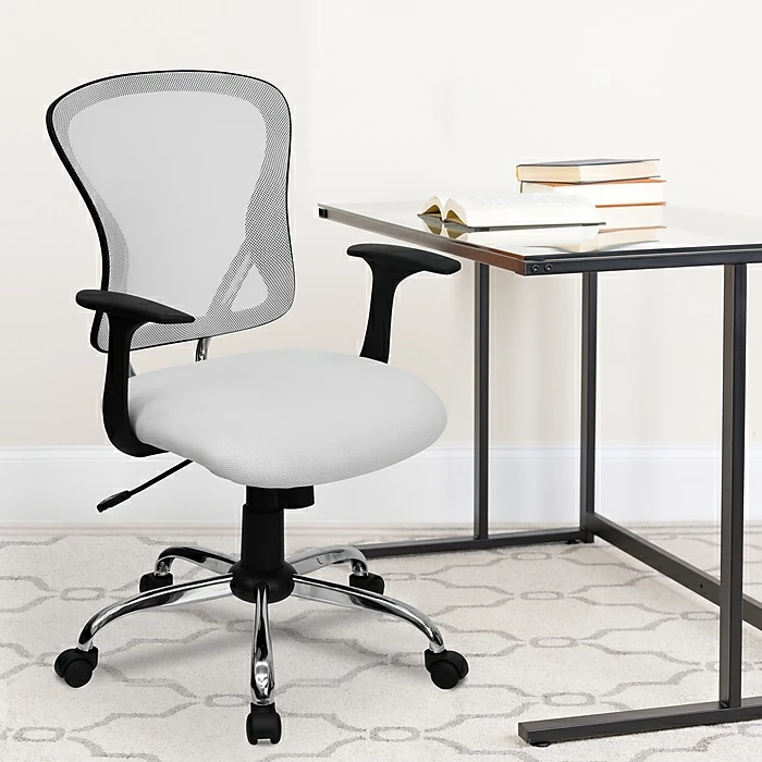 - A metal chrome-finished base stabilizes the Flash Furniture white mid-back executive chair