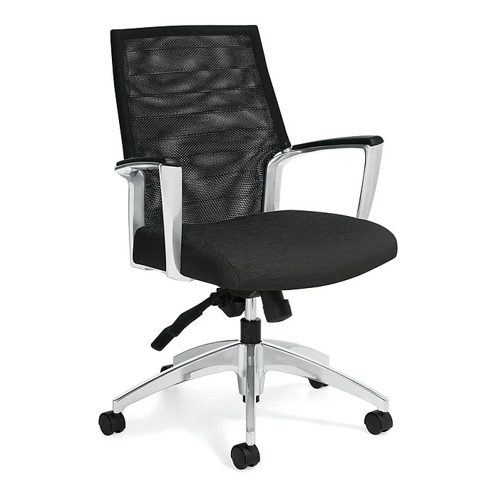 - Breathable black mesh back, durable urethane arm caps are soft and warm to the touch, applications are conference room, executive office, office/commercial