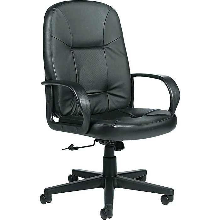 Global Arno Swivel/Tilt Chair in black has executive high back with leather upholstery to keep you comfortable while you work. Chair designed for conference room has waterfall seat cushion with impact-resistant arms reduces stress on your legs.