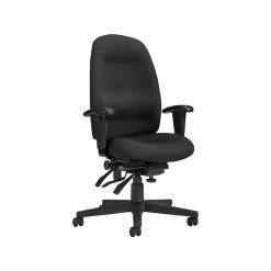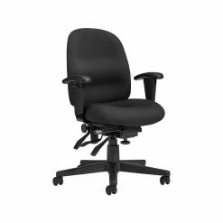 - Scuff resistant arched molded base with twin wheel carpet casters