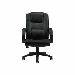 Accomplish the day’s business with this Offices To Go executive office chair featuring an integral headrest. Soft Luxhide upholstery with mock leather trim and padded armrests project an executive look while ensuring support for your back and arms, while the integrated headrest lets you lean back in comfort. This versatile chair also has a single-position tilt lock with tilt-tension adjustment and pneumatic seat height adjustment to adapt to your individual needs. The wide scuff-resistant base facilitates safe, easy pivoting from task to task while looking good even after heavy use, while the twin-wheel carpet casters on the Offices To Go executive office chair ensure nimble movement between workstations.