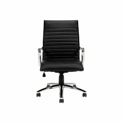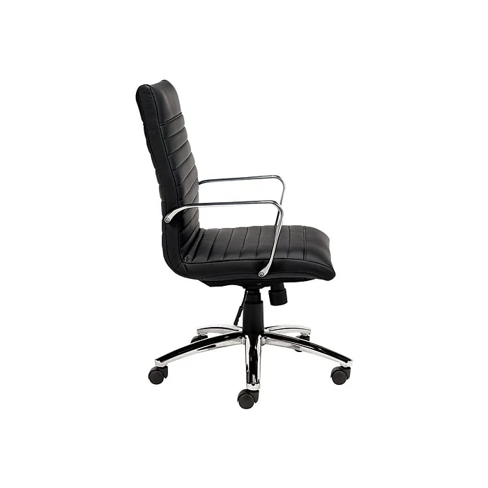 Bring a bit of 60s style back to your office space with this Offices To Go Luxhide executive office chair. The linear stitching delivers a sleek, segmented look, while the fixed chrome arms and base create a polished finish. Pneumatic seat height adjustment raises the seat up or down to meet the level of your desk, and tension adjustment and tilt lock make it easy to set recline. The waterfall seat edge design relieves strain on your legs and helps ensure proper circulation through your busy day. With dual-caster wheels on its stable base, this Offices To Go Luxhide executive office chair moves easily from your credenza to your printer.