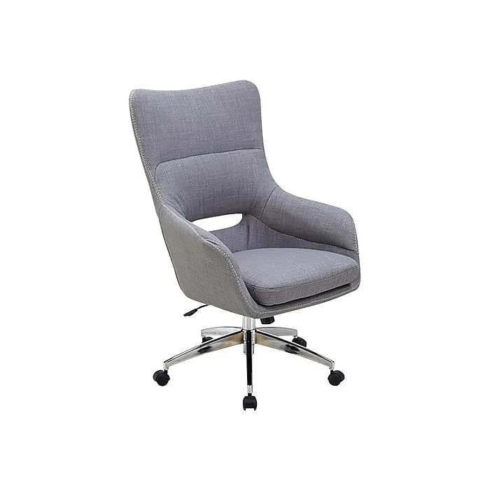 Add a modern flair to your office space with the Hanover Carlton wingback office chair from Hanover. An extra-wide backrest adds maximum comfort while also giving the user an executive appearance. The modern chrome base features five caster wheels and a swivel mechanism for a smooth 360-degree spin. The gas-lift cylinder ensures the perfect seat height that’s customized to you no matter what desk you happen to be using. The Carlton design can be used outside the office as well. Its solid, neutral tone fabric integrates seamlessly into most color schemes and works as a nice accent chair that will bring modern vibes to any living room, kitchen, and lounge space. Professionalism, comfort, and style come together perfectly with this trendy office chair from Hanover.