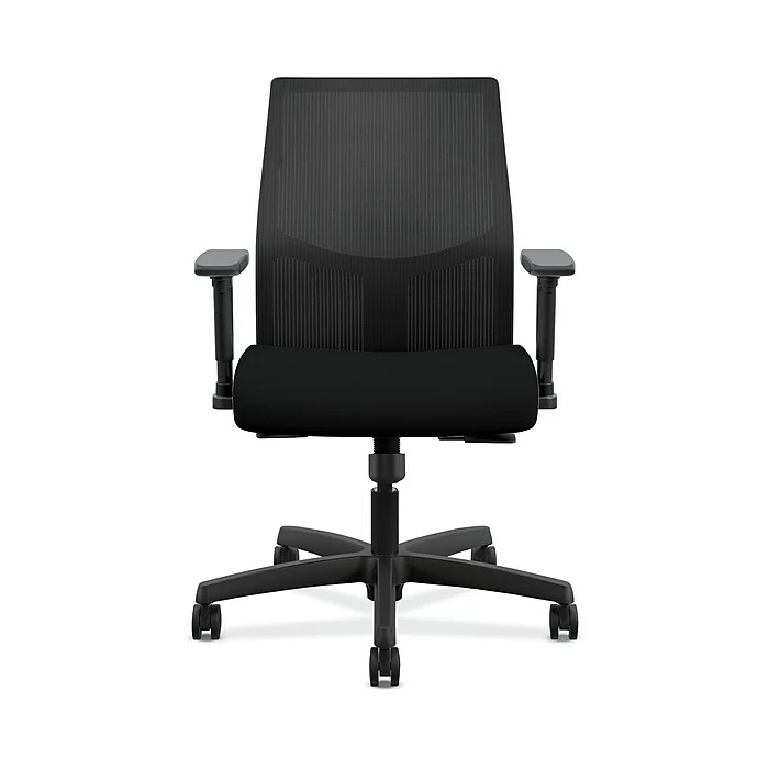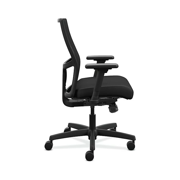 We all want comfort from our office chair. But what about style? Customizable control? Advanced features? You’ve got them all in this Ignition low-back task chair with a ilira-stretch mesh back. The synchro-tilt control mechanism with seat slider reclines the back and seat in the perfect ratio to give you a natural posture, whether sitting upright or leaning back. The breathable ilira-stretch mesh back cradle your spine and increases airflow. Height- and width-adjustable arms provide a custom fit. When you want more control over your comfort, you want an Ignition ilira-stretch mesh back chair. Very easy assembly required. ilira-stretch mesh back, seat fabric and frame colors are Black.