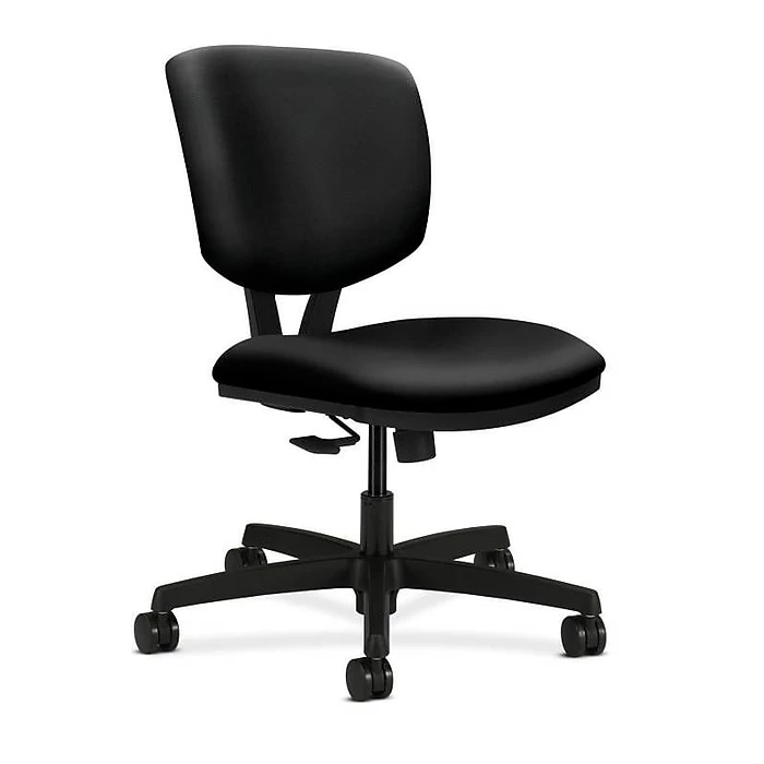 Volt seating from HON offers upscale style, full-scale comfort and impressive quality at a surprisingly affordable price. This low-back chair with synchro-tilt has generous seat and back cushions that are contoured for comfort while performing active office work. Height-adjustable arms can be ordered separately. Seat and back upholstery color is Black.