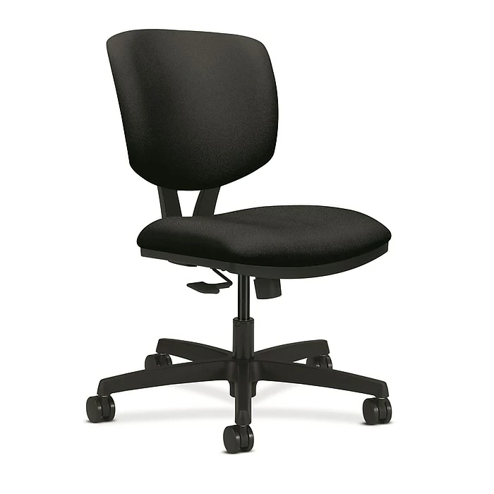 Volt seating from HON offers upscale style, full-scale comfort and impressive quality at a surprisingly affordable price. This low-back chair with synchro-tilt has generous seat and back cushions that are contoured for comfort while performing active office work. Height-adjustable arms can be ordered separately. Seat and back upholstery color is Black.