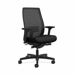 Endorse is The HON Company’s most adaptable seating collection. This mesh, mid-back task chair features adaptable comfort geometry, plus the added benefit of an easy-to-use built-in lumbar adjustment for exceptional lower back support. Synchro-tilt prom otes circulation and spinal alignment, and the standard pneumatic height and seat glide controls accommodate people of varying heights. Adjustable arms help support the forearms and shoulders. The ilira -stretch back material provides natural ventilatio n. Warranted for users up to 300 lbs. Frame and back mesh color is Black and seat upholstery color is Black.