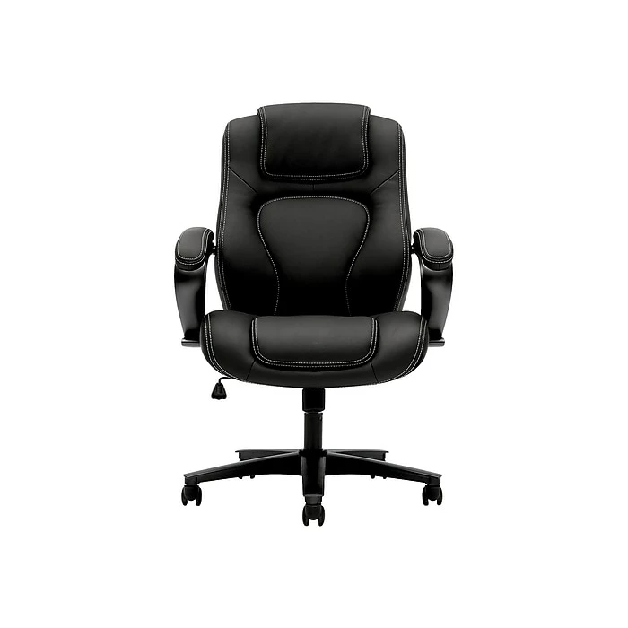 - Segmented, padded back design with contrast stitching offers an upscale look for any executive office or conference environment