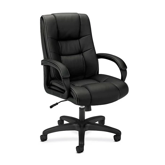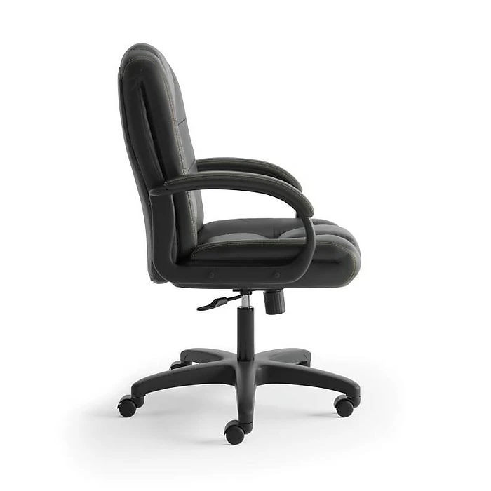 Cream-colored contrast stitching, an overstuffed back and padded loop arms give this chair an upscale feel at a compelling price. Seat and back upholstery color is Black.