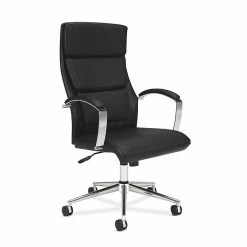 SofThread leather upholstery, an integrated headrest and Polished Aluminum arms and base give this chair an upscale feel at a compelling price. Seat and back SofThread leather color is Black.