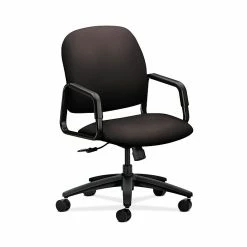 Everywhere you go, people rely on HON 4000 Series Solutions seating for dependability and comfort. This high-back chair features a floating backrest gives your spine maximum support. The proven center-tilt mechanism allows you to comfortably recline. Fi xed arms are integrated into the frame. Seat and back upholstery color is Espresso, and frame color is Black.