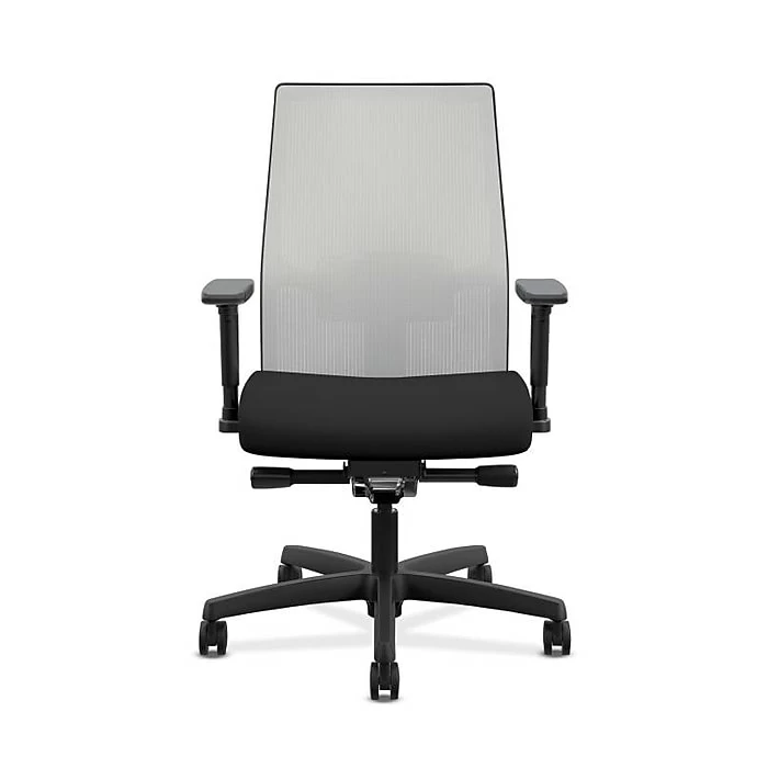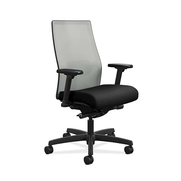 Feel supported throughout the day with this black mesh office chair. This chair features fully adjustable arms and a synchro-tilt mechanism to allow shifts in seat height and recline angle that fully accommodate individual preferences. The mesh backing is flexible and breathable, allowing free air movement, and the contoured seat makes this chair a comfortable choice for long periods of sitting. Designed with hard caster wheels, this HON Ignition 2.0 task chair rolls smoothly and quietly through any workspace.