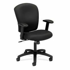 Upholstered back, contoured seat cushions, waterfall seat edge, and height-adjustable arms give this chair an upscale feel at a compelling price. Seat and back upholstery color is Black.