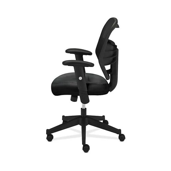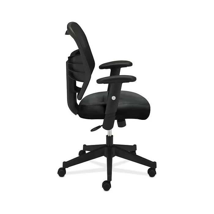A waveform seat and height-adjustable padded arms give this chair an upscale feel at a compelling price. Seat upholstery is Black SofThread leather mesh. Back mesh, frame and base color is Black.