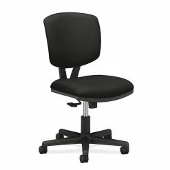 Roll right up to your desk in this HON Volt Synchro-Tilt task chair, which features a five-star base and rolling casters for effortless mobility. The contoured seat and back offer all-over comfort, while the unique design is created with users big and small in mind. An armless setup makes this chair easy to slide in and out of, so you can quickly get up to greet customers or clients. Featuring pneumatic seat height adjustment, this chair can be configured to meet the height of your desk. The Synchro-tilt mechanism promotes proper alignment while you recline, so you can take a relaxing break in between tasks. This HON Volt Synchro-Tilt task chair comes with an upright tilt lock function to keep you sitting at full attention when there’s important work to be done.