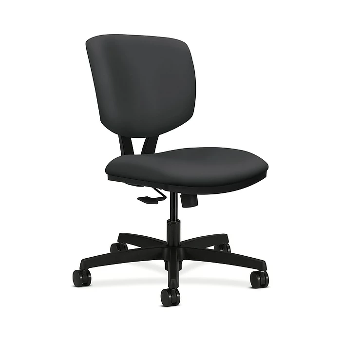 Volt seating from HON offers upscale style, full-scale comfort and impressive quality at a surprisingly affordable price. This low-back chair with synchro-tilt has generous seat and back cushions that are contoured for comfort while performing active of fice work. Height-adjustable arms can be ordered separately. Seat and back upholstery color is Basalt .