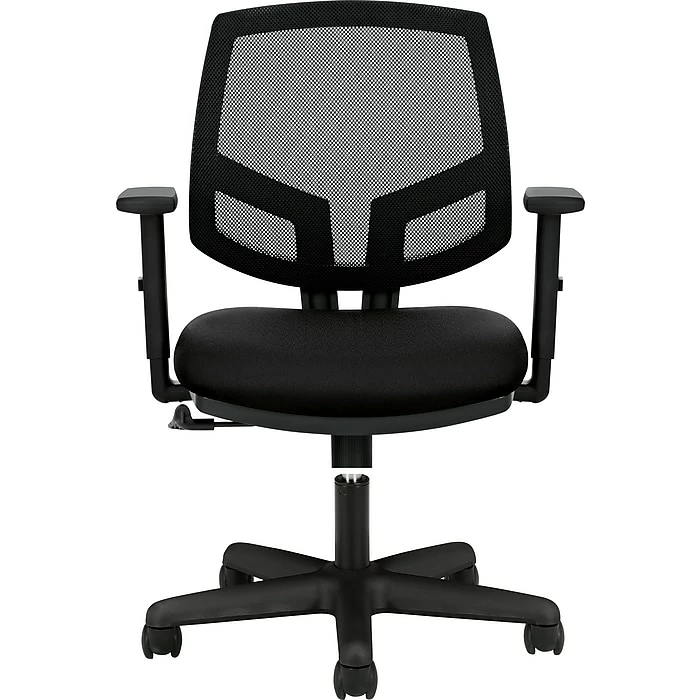 Volt seating from HON offers upscale style, full-scale comfort and impressive quality at a surprisingly affordable price. This mesh back chair with center-tilt has a generous seat cushion and a cooling mesh back for ventilation while performing active office work. Height-adjustable arms are included. Seat upholstery color is Black.