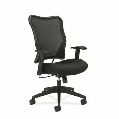 Black sandwich mesh seat and height-adjustable arms give this chair an upscale feel at a compelling price. Seat upholstery color is Black and back mesh color is Black.