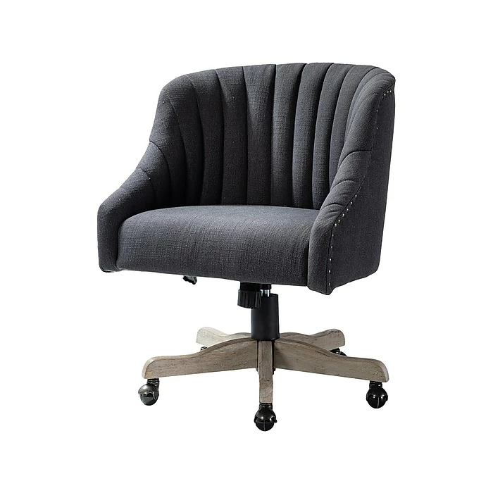 Add a touch of contemporary elegance to your space with a design that is equally functional and stylish. This modern swivel office chair by Karat Home is a wonderful addition to any office or home office with its fabric upholstery that blends with any design taste. Designed in a chic style, tufted back and gleaming nailhead trim lend a tailored touch, while foam fill offers comfort and support. The chair’s base includes tilt control, a swivel mechanism, and a lever-operated lift to adjust the seat height. Sturdy and durable solid wood and metal base and 360-degree wheels allow you to glide to anywhere in the room. Height-adjustable to tailor your professional space. Perfect for any casual or professional working area, providing comfortable support with a cozy and convenient design.