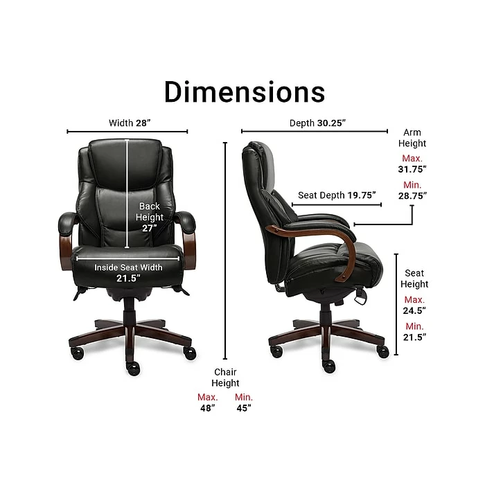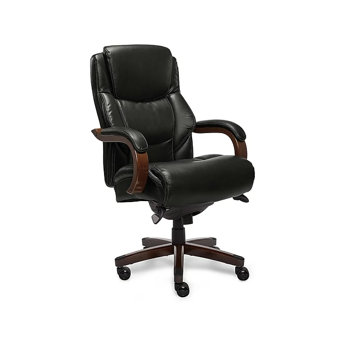 From a trusted brand known for quality, traditional craftsmanship and comfort, the La-Z-Boy Delano big and tall ComfortCore tradition executive office chair incorporates a generous design with advanced performance for exceptional support and comfort at work and play. The ComfortCore Plus advanced layering system with memory foam offers unique zone-based support, placing cushioning in the areas you need it most. The strategically assigned plush body pillowing and padded headrest on this big and tall office chair combine to provide neck support and minimize pressure points for relief from discomfort caused by prolonged sitting. This ergonomic chair is fully adjustable for a personalized fit. You can control the height and tilt to suit your needs for customized positioning and optimized body alignment. The contoured lumbar area provides tailored lower back support to alleviate discomfort.