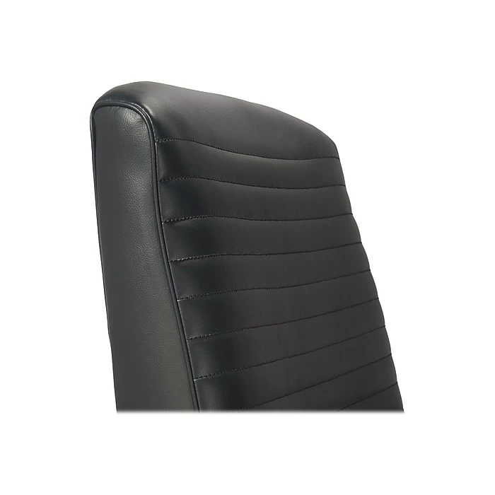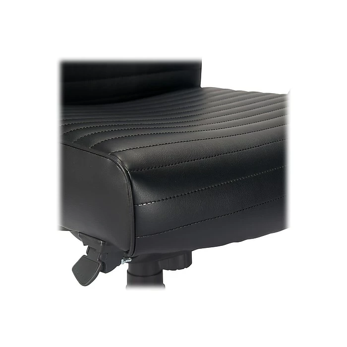 - Smooth bonded leather upholstery in black with manufactured wood frame