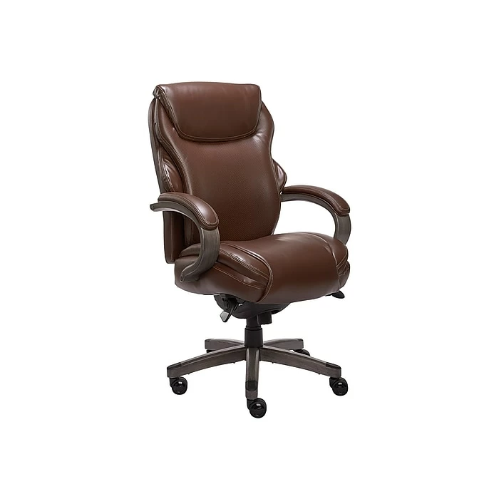 With high-end soft bonded leather upholstery and elegant wood detailing, the La-Z-Boy Hyland executive office chair with AIR technology is a statement chair for any traditional office space. The flexible AIR lumbar system pivots to provide back support whenever you shift. The adjustable height, recline, and layered memory foam cushions will keep you cradled in comfort all day. The La-Z-Boy Hyland executive office chair is a luxurious addition to any workspace.