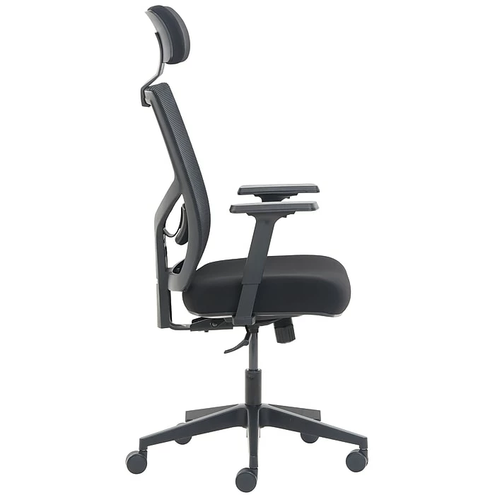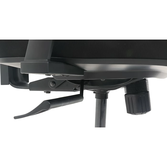 - This chair provides lumbar and head support; butterfly synchro seat plate with three-position lock