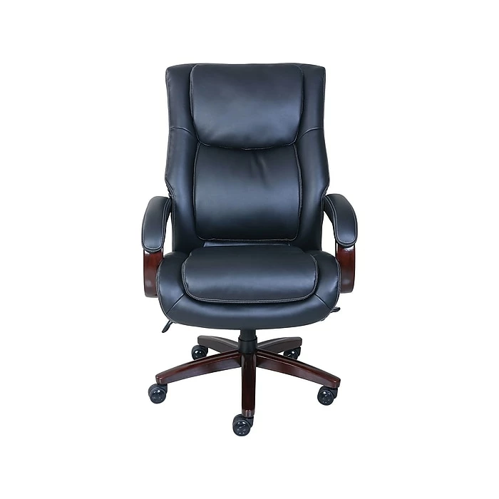 Take your office from casual workspace to serious workplace with this handsome La-Z-Boy Winston executive office chair. Made of commercial-grade materials, its supple black bonded leather upholstery provides you with a smooth-to-the-touch surface that cradles your body in comfort, while its elevated headrest and lumbar support fully support your back, neck and head, enabling you to work for hours on end. The La-Z-Boy Winston executive office chair has fingertip controls that are within arm’s reach, making it easy for you to adjust your position as needed throughout the day, while its heavy-duty casters let you move from one point in the room to another in a flash.
