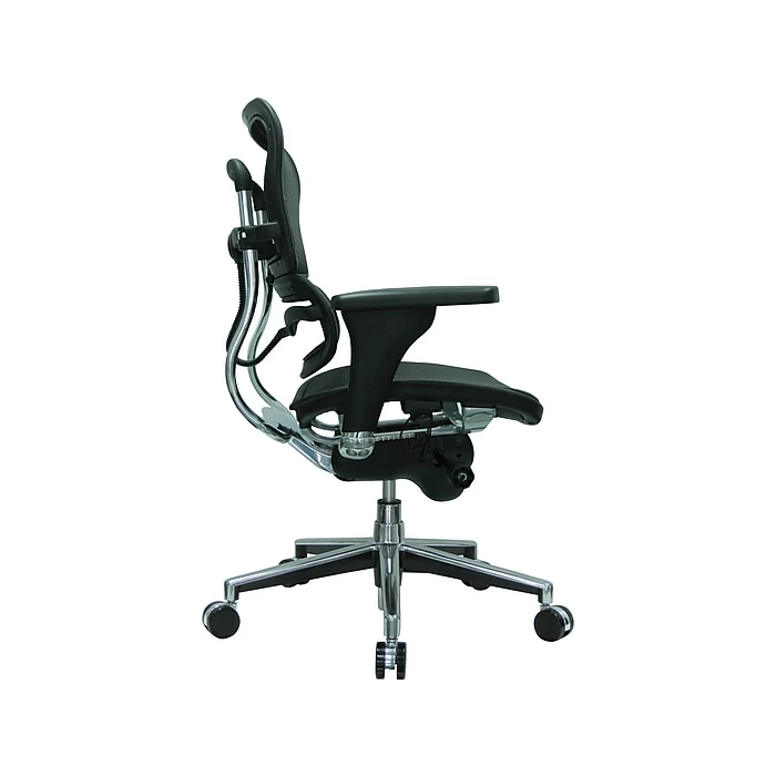 Customize office comfort with this Raynor Ergohuman mesh computer and desk office chair. Adjustable for both back height and back angle, this chair is thoroughly equipped to deliver personalized upper-body support. When reclining, the synchro-tilt device regulates movement of the back in relation to the seat to maintain proper back alignment, and the tilt-tension adds extra control. While the mesh back allows airflow to cool your upper body, the waterfall seat improves circulation to alleviate leg fatigue. The adjustable armrests can be adapted for both height and depth to lend superior support to elbows and shoulders. This Raynor Ergohuman mesh computer and desk office chair provides additional positioning options with mechanisms for perfecting your preferred seat height and depth.