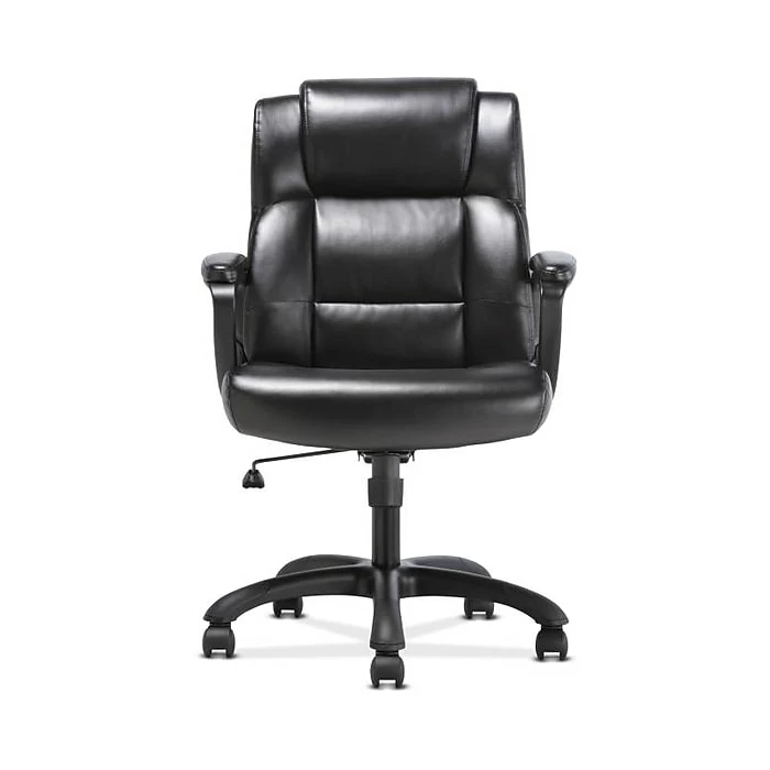 The 3-Oh-Five mid-back executive chair features luxurious SofThread leather for an upscale look and feel, making it a smart and stylish solution for any application. It offers simple and intuitive controls such as pneumatic seat height adjustment, 360-degree swivel, tilt tension and tilt lock for added customizability and comfort. The contemporary tapered arms add to the modern appeal. The comfort, stylish look, and price point of this chair make it a perfect addition to the office, whether at work or at home. This chair meets or exceeds industry standards for safety and durability, and is backed by a limited 3-year warranty.
