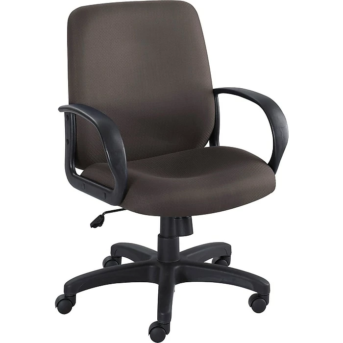 The Safco 6301BL Poise Mid-Back Executive Chair is designed to give users weighing up to 250 pounds the comfort they need to get through busy workdays. This mid-back chair has a cushioned seat and back, integrated arms, and a black finish. Its seat-hei ght adjustment lever lets you comfortably position yourself to type on the computer, read through emails, or create a presentation.