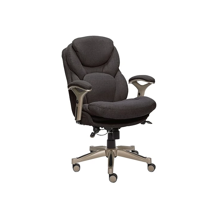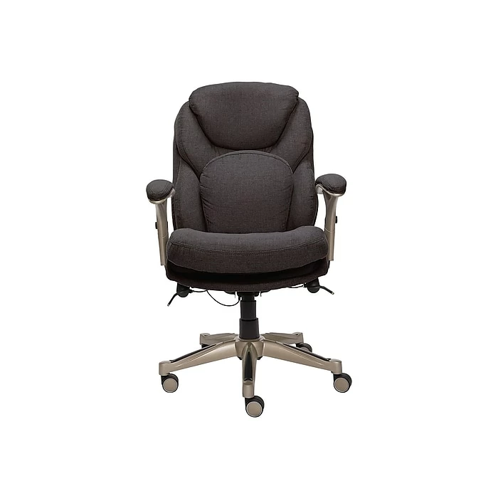 Imagine an office chair that helps promote strength and flexibility in your back. That’s the Serta Works ergonomic executive office chair with Back in Motion technology. This feature-rich, performance-focused chair helps its users become more productive and efficient by maximizing lower back support and comfort while seated. The Back in Motion active seat technology swivels the lumbar forward like the pelvis tilt exercise, promoting strength and flexibility in your core. The push-button adjustable armrests and pneumatic height adjustment can be customized to find the right fit for you. And the multilayered cushions are comfortable yet supportive, so you’ll feel refreshed and rejuvenated, even after a long day.
