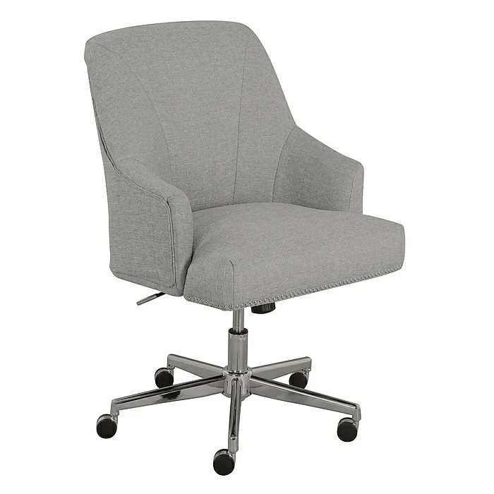 Add a touch of modern elegance to your space with a design that is equally functional and stylish. This expertly-wrapped, neutral design is height-adjustable to tailor your professional space. The chrome-finished, stainless-steel stand offers you 360-degree swivel and casters for easy mobility. The memory foam seat and arms with pocket coils feature renowned Serta comfort, perfect for home or office use.