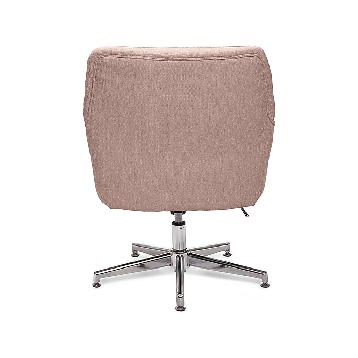 - Twill upholstery in blush pink; chrome-finished stainless steel base with casters offers 360-degree mobility